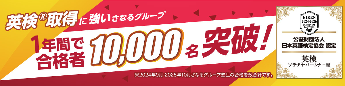 2024年、さなるグループは、公益財団法人 日本英語検定協会(以下、英検協会)より「地域の児童・生徒の英語能力向上に大きく寄与・貢献し続けている団体」の一つとして、第1期「英検プラチナパートナー」の認定を受けました。これは、英検協会の掲げる理念と合致し、その協力関係を象徴するものとして付与されるものであり、全国の 約5万件の学習塾の中でわずか14塾だけが認定を受けています。 (※第2期認定)